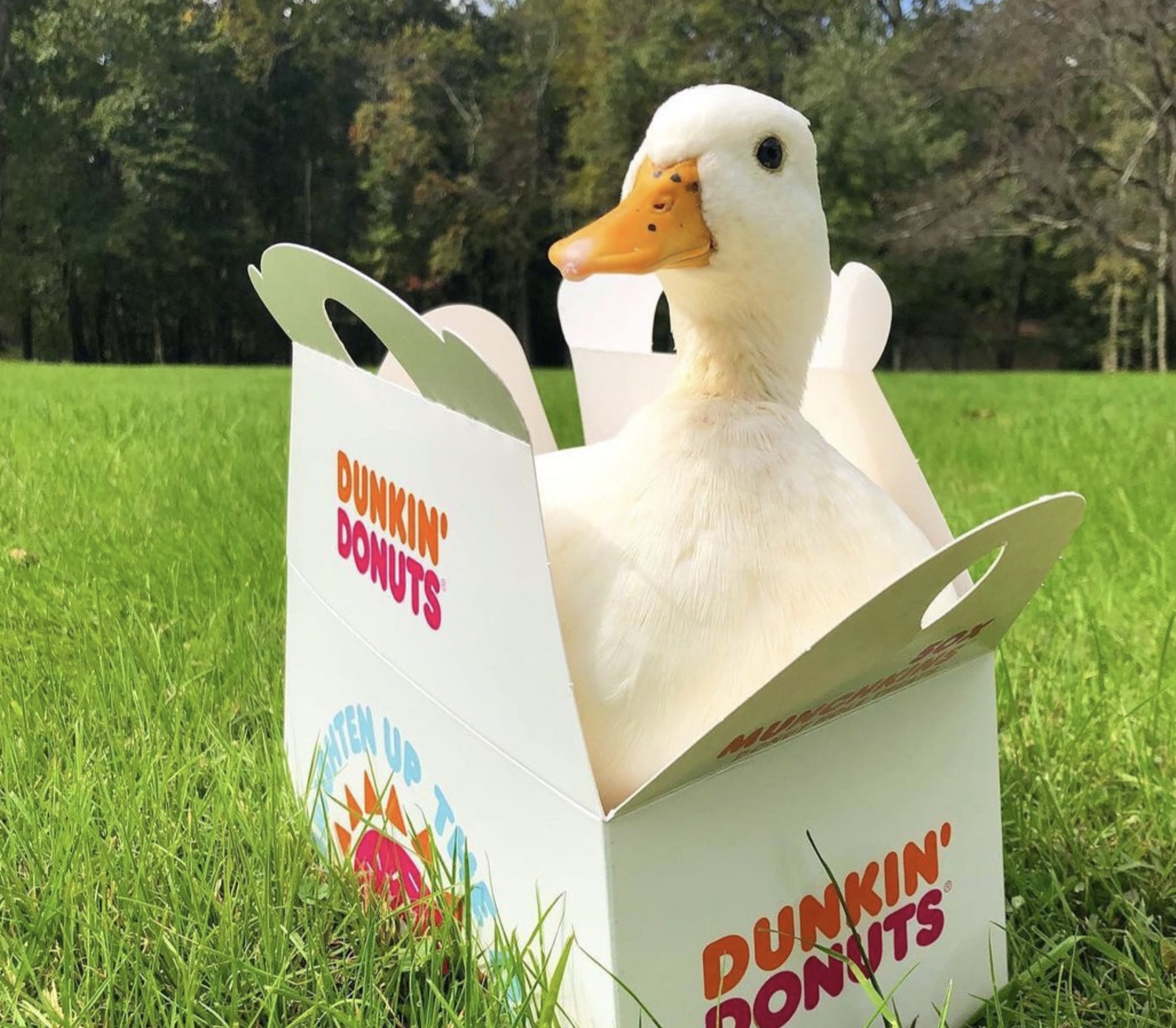 Ellis still favors baked goods and sweets as names, including Toast, Pancake, Brownie, Nutmeg, and Sugar. And Dunkin’ Donuts – and other chains like Starbucks and Sonic – make plenty of appearances in her posts. (If you haven’t yet, treat yourself to some of her “Duck ASMR” videos of various flock members sipping on iced fruity water in to-go cups.)