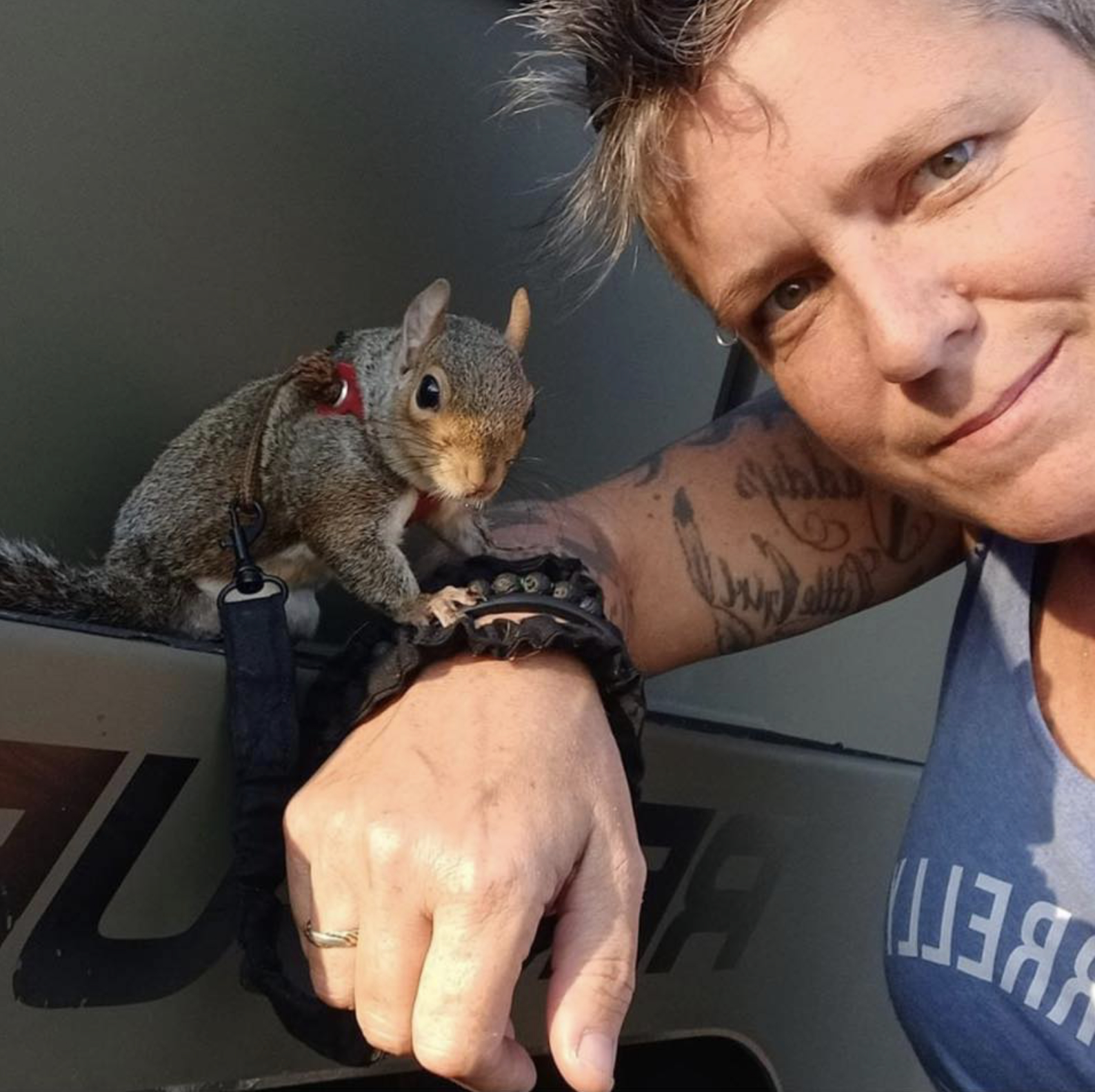Squirrelly AF founder Jill Horstmann with rescue squirrel Juice.
