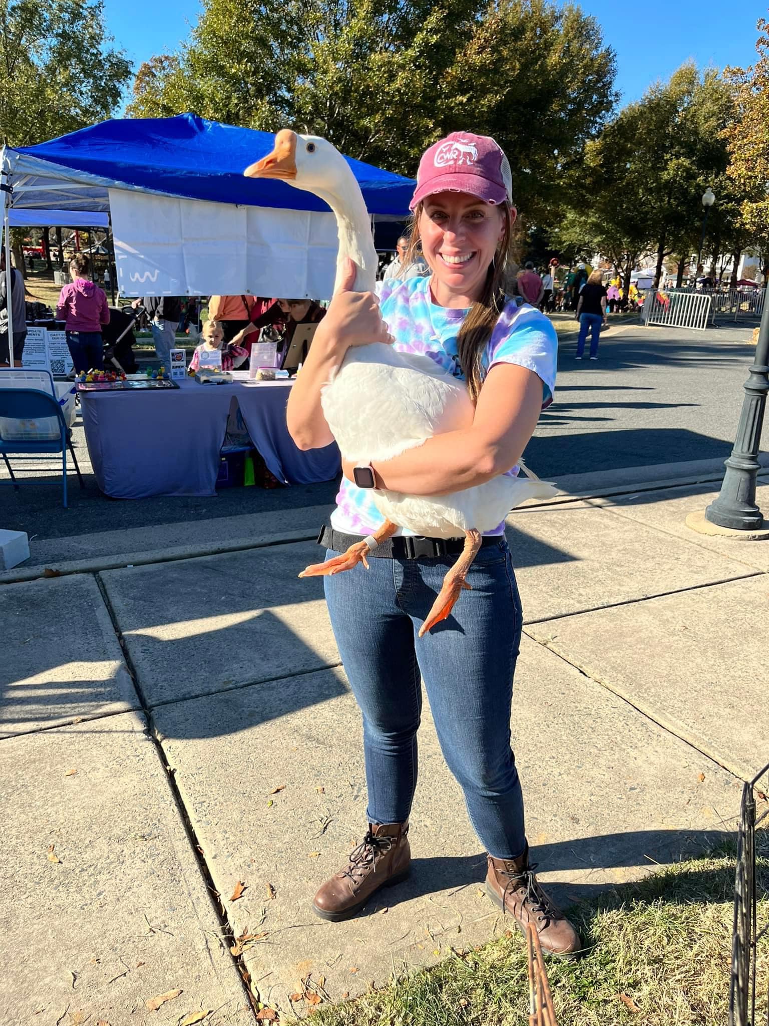 Melissa also has a special soft spot, she says, for the “many resident birds that have won my heart through the years. From lil’ Zeke the chicken, who has been here since I’ve started…to Willis, the best turkey ever who passed away a few years ago. There was Charlie the duck, who went on many fundraisers with me and Zeke … Then I fell in love with Augustus, the biggest, fastest goose ever – until I raised Forest. My heart is with these three geese: my baby Forest, her love companion Jenny, and best buddy Maverick, who has since passed away. My greatest joy was raising them … and spoiling them as much as I can.”